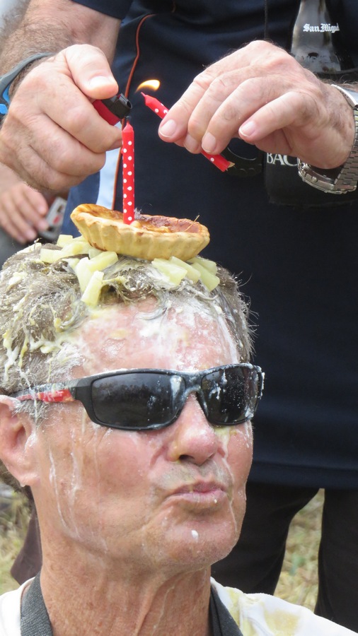 Bimbo reaching 70 & having a birthday cake made by Flasher