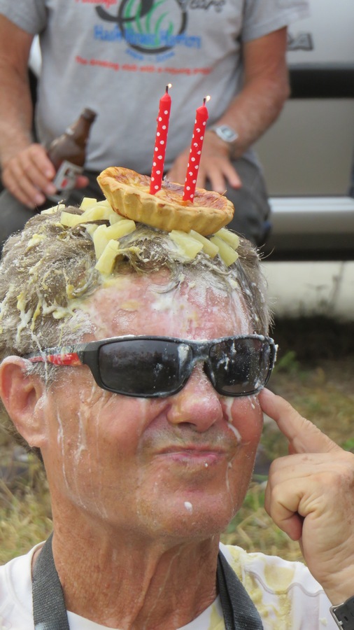 Bimbo reaching 70 & having a birthday cake made by Flasher