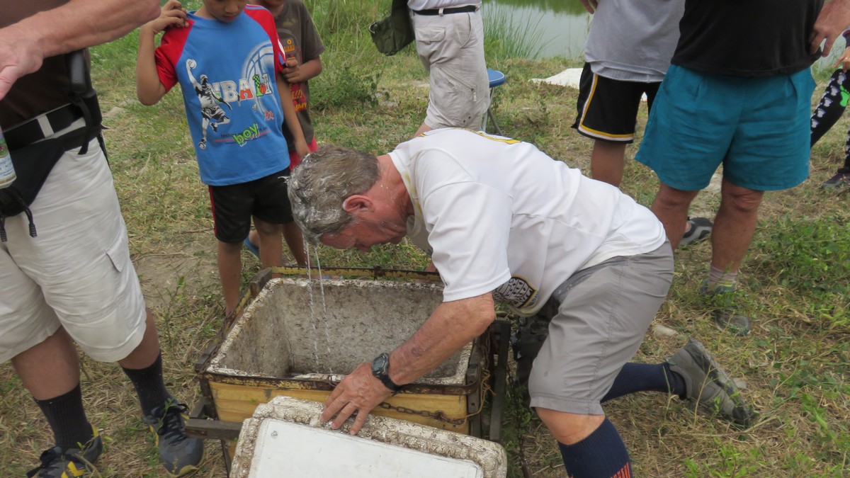 -Bimbo cleaning off the cake in the esky